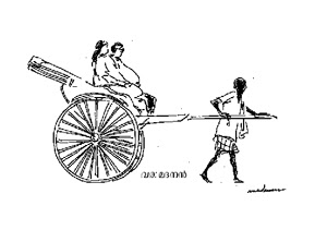 മനുഷ്യനെ മനുഷ്യന് വലിച്ചുകൊണ്ടുപോകുന്ന റിക്ഷകള് കണ്ട കേരളീയര് കുറവായിരിക്കും. വികസിതപ്രദേശങ്ങള് എന്നോ ഉപേക്ഷിച്ച സമ്പ്രദായം കാണണമെങ്കില് കൊല്ക്കത്തയിലേക്ക് പോയാല് മതി. ഭ്രാന്തമായ തിരക്കുള്ള റോഡുകളില് പൊരിവെയിലില് റിക്ഷ വലിച്ച് വിയര്ത്തോടുന്നതും പ്രായമേറിയവര്, അതില് സഞ്ചരിക്കുന്നതും ഏറെയും പ്രായമേറിയവര് തന്നെ. അതുവലിക്കുന്നത് വിനോദത്തിനല്ല, വയറുനിറയ്ക്കാനാണ്. മൂന്നുപതിറ്റാണ്ട് മുമ്പ് കൊല്ക്കത്ത തെരുവില് ഒരു റിക്ഷയില് സഞ്ചരിച്ചപ്പോഴുണ്ടായ വേദന പ്രശസ്ത ഗ്രന്ഥകാരന് ഡൊമിനിക് ലാപിയര് വിവരിച്ചിട്ടുണ്ട്. ദാരിദ്ര്യം നെറ്റിയിലൊട്ടിച്ച് സൈക്കിള്റിക്ഷകള് വലിക്കുന്നവരെ എവിടെയും കാണാം. മനുഷ്യന് മനുഷ്യനെ വലിച്ചോടുന്നത് മോശമാണെന്ന് അരനൂറ്റാണ്ടു മുമ്പെങ്കിലും നമ്മള് പറഞ്ഞതല്ലേ, എന്താണ് ഇതിപ്പോഴും നിര്ത്തലാക്കാത്തത് എന്നു ചോദിച്ചാല് എല്ലാവരും പറയും-അതിപ്പോള് അവരുടെ ഉപജീവനമല്ലേ. നമ്മള് അതില്ലാതാക്കരുതല്ലോ. തീര്ച്ചയായും അഞ്ചോ പത്തോ കൊല്ലം കഴിഞ്ഞാല് അത് സ്വാഭാവികമായി ഇല്ലാതാകും. പുതിയ തലമുറക്കാര് ഈ പണിക്ക് വരാനിടയില്ല.